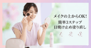 日焼け止めの塗り直し方法|メイクの上からできる簡単3ステップ 本記事にはプロモーションが含まれます。 「日焼け止め、朝ちゃんと塗ったのに…夕方には焼けてない?」って思ったこと、ありませんか? 正直、私もずっと「朝しっかり塗...